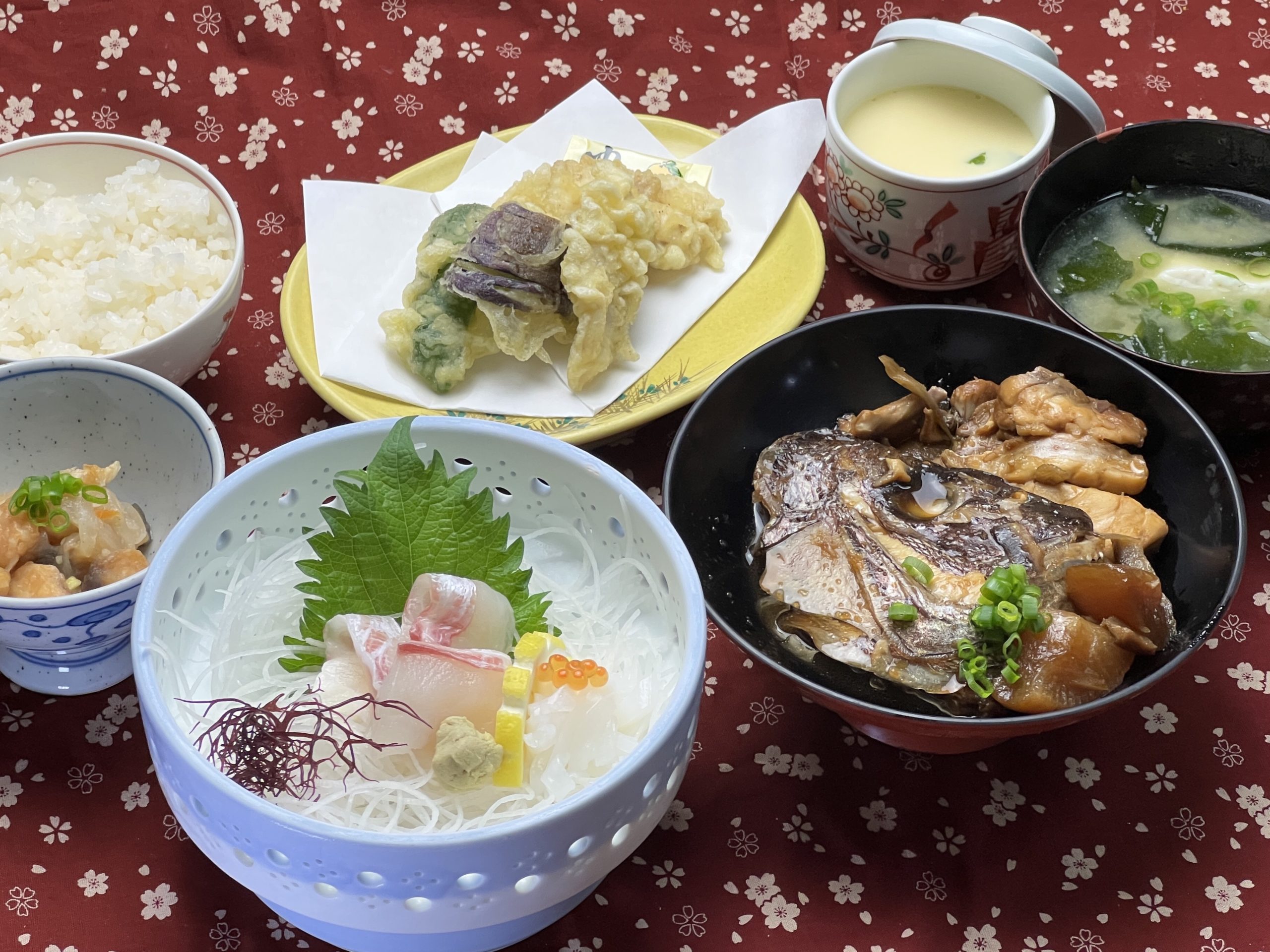 刺身、アラ炊き、天ぷら 南蛮漬け あら汁、茶碗蒸し